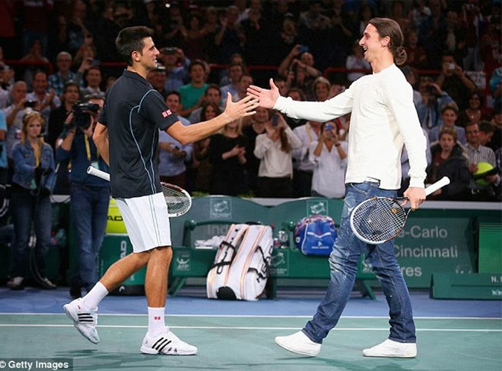 radu u PSŽ-u Zlatan Ibrahimović.Zvijezda francuskog prvaka je dobio veliki aplauz pri izlasku, a još veći kada je zaigrao s Đokovićem na malom terenu. Vidjelo se da Ibrahimoviću reket nije strani predmet u ruci, pa je tako čak bolje igrao tenis, nego li što je kratko tehnicirao s lopticom na nogama.