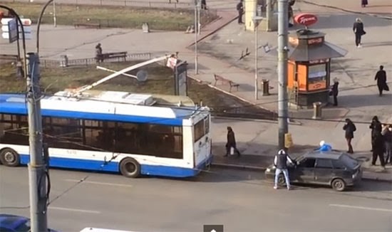 zakače za trolejbus na jednoj stanici u Sankt Peterburgu.