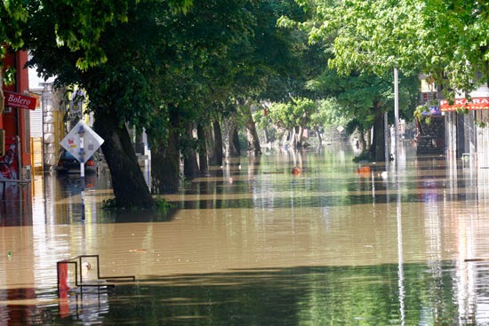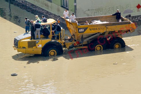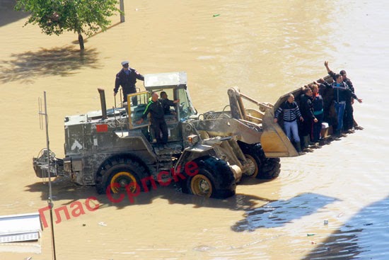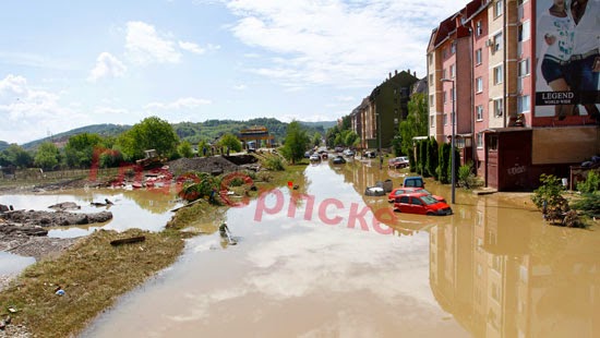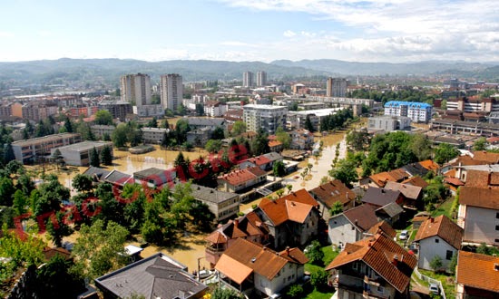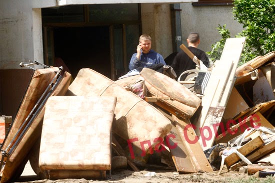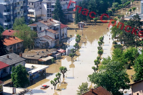 o razornoj moći bujice koja se ustremila na Doboj iz Bosne. Podignuti parketi, mokri