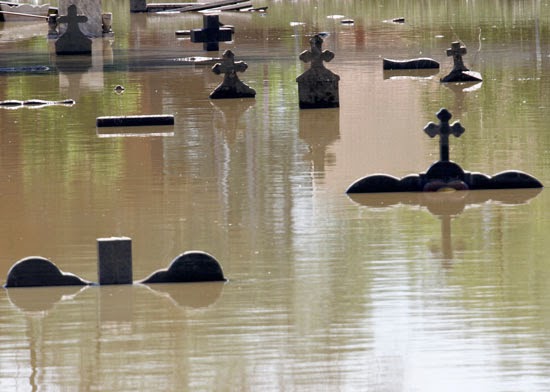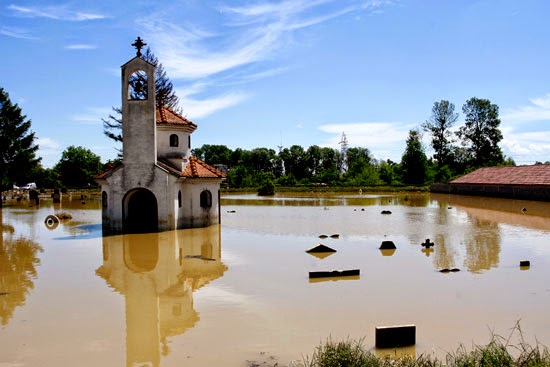 iz crkvenog dvorišta se naziru, ali iako se voda polako povlači, Šamac je i dalje